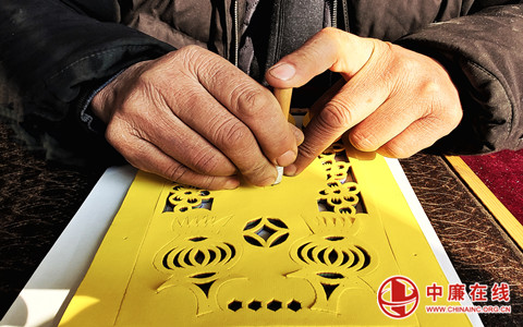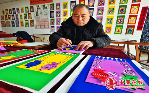 “制作挂门笺要经过十几道工序,一次制作8副左右。纸放于案桌上、用实物压平,用五色纸搭配,然后贴在一起,按照大小切割,设计好图案,感觉美观后再下刀刻。但刻最为关键,一定垂直下刀。否则下刀斜了,容易破坏下面的彩纸就全部报废。”张乃苍一边讲解一边示范,不仅技术操作娴熟,而且讲得头头是道。“咱郯城挂门笺与众不同的贴法,是‘红东绿西黄当央(中),小红蓝的在两旁......。’”真没有想得,这小小的五颜六色的纸张里面竟蕴藏着这么多的民俗文化。如今,张乃苍制作出的挂门笺,不仅具有较高的审美情趣和收藏价值,而且走入大中小学生课堂,保护了非遗文化的传承。(高军 摄影)