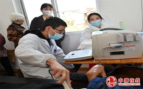 原来,现场正在进行的是东兴区石子镇卫生院落实国家基本公共卫生政策,组织家庭医生走进社区,为社区里65岁以上的老人奉上免费健康体检项目,通过血常规、量血压、测血糖、心电图、B超等多种项目检查,为辖区内老年人的健康管理收集第一手资料。