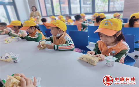 跟随着学校里的导游张老师,孩子们漫步在若大的校园里。“嘘,哥哥姐姐们正在上课呢!”孩子们轻轻的走进了宽敞明亮的三层大食堂,这将是我们升入小学后享用午餐以及餐点的地方,食堂已经为我们准备好了香甜的酸奶和松软的面包,真是感谢老师们的热情款待呢!
