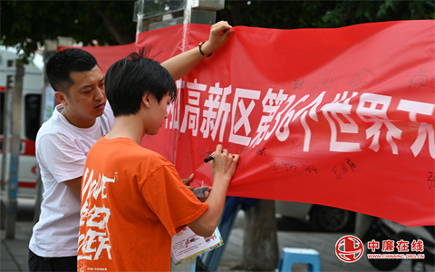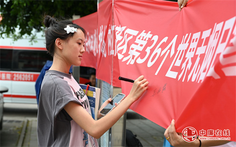 在教学楼下,志愿者以设立宣传展台、悬挂横幅、摆放宣传展板,同时向学生们发放宣传彩页和倡议书等多种方式,从青少年吸烟的心理、吸烟对人体的危害、二手烟的危害、烟草成瘾及如何拒绝第一支烟等方面做了详细讲解。同时,通过学生们在条幅上签字的形式,倡导青少年要拒吸第一支烟,远离烟草,享受健康生活,争做无烟下一代。