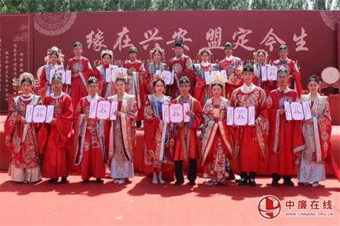 这场韵味十足的传统中式集体婚礼将传统文化与文明实践有机结合,既彰显了传统文化的魅力,又倡导移风易俗新风正气。虽然整场婚礼简约、朴素,但浓浓的喜庆氛围、盛大的传统婚礼仪式及众多嘉宾的共同见证令10对新人终生难忘。(王佳赢)