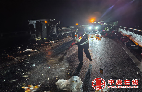 货车爆胎侧翻!高速交警高效处置保畅通