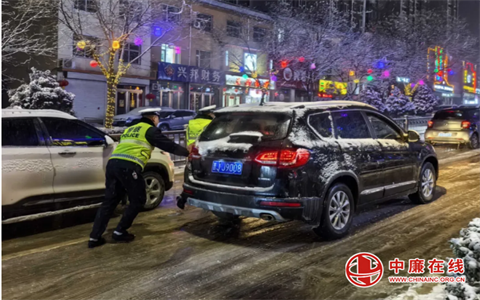 雪纷飞,“警”相随!石楼交警雪中执勤保畅通