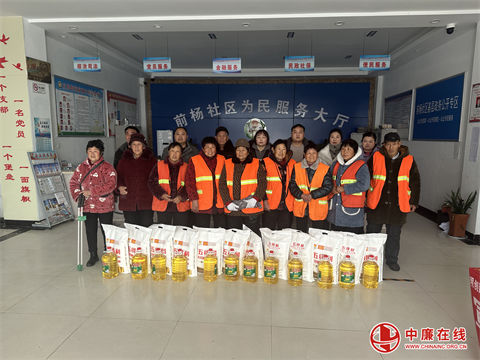 春节到来之际,安徽省亳州市蒙城县庄周街道前杨社区非公企业对保洁员进行慰问。企业法人李秀广向节日期间仍值守在工作一线的保洁员,致以新 ...