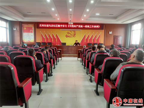 蒙城县庄周街道马店社区集中学习《中国共产党统一战线工作条例》