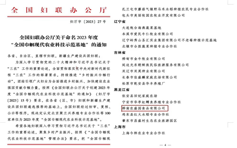 近日,全国妇联办公厅发布《关于命名2023年度全国巾帼现代农业科技示范基地的通知》(妇厅字〔2023〕27号),公布了2023年度全国巾帼现代农业 ...