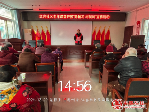 为深入推进移风易俗工作,破除陈规陋习,改变辖区老人陈旧观念,在庄周街道的指导下,亳州市蒙城县庄周街道红光社区老年课堂开展了除陋习 ...