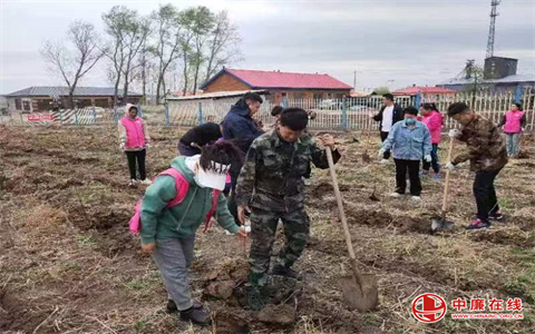 宝清县夹信子镇团委弘扬“五四”精神,开展“绿化神州大地”植树活动