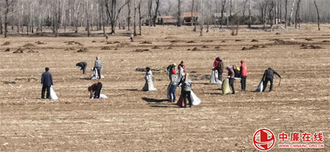 拾捡废旧地膜 播种春日希望