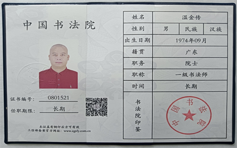 近日,经过严格审核和考评,书法家温金传先生被中国书法院聘为院士并颁发证书。温金传先生1974年9月出生于广东,在忙于管理多家公司的同时 ...