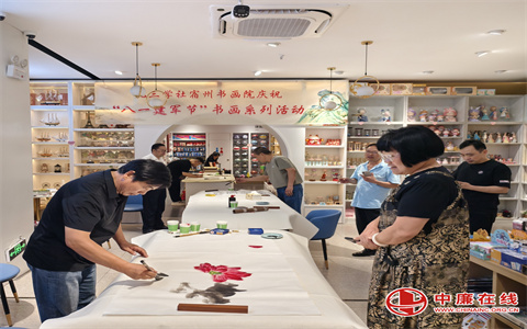 7月20日下午,九三学社宿州书画院组织书画家杨涛涛、闵飞、武学军、王春生、吕跃坤等5位书画家,在宿州徽之宝书城里,围绕着八一建军节主题 ...