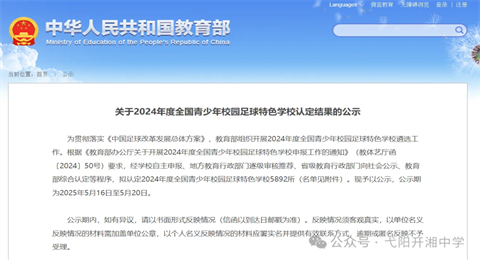 喜讯!教育部公示!开湘中学入选2024年度全国青少年校园足球特色学校!