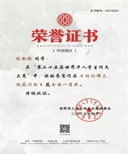 祝贺!上饶市广丰学子在第二十五届世界华人学生作文大赛中喜获佳绩