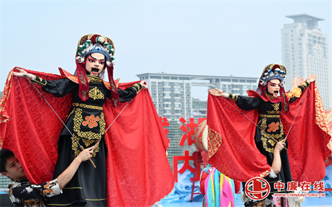 2023年6月18日,四川省内江市甜城湖畔,文艺工作者在表演非遗文化节目。当日,内江市在甜城湖举行第11届大千龙舟文化节,通过非遗文化展演 ...