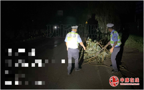 【夏季行动】夜间巡逻遇落石 武乡交警徒手搬运除隐患