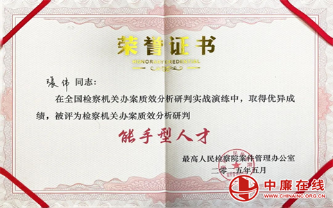 石楼县人民检察院干警获评“全国检察机关办案质效分析研判能手型人才”