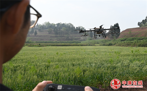 2023年4月12日,在四川省内江市东兴区石子镇七星村,农技人员操作无人植保机对小麦进行喷药作业。眼下正值小麦春季田管的关键时期,内江市 ...