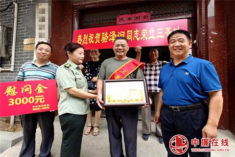 7月26日,山东省郯城县人民武装部、退役军人事务局及马头镇退役军人服务站工作人员带着五名现役军人的立功喜报,来到马头镇村街为其父母披 ...