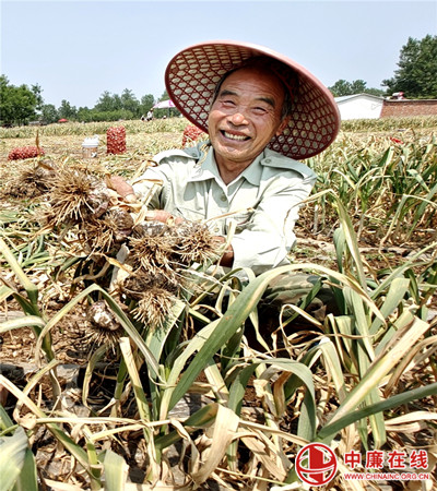 5月24日,山东省郯城县马头镇双兴社区陈墩村农民正在复垦土地上收获大蒜。瞧,丰收的喜悦挂在脸上。农民一边挖蒜、一边整理装袋,田间地头 ...