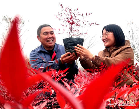 12月11日,在山东省郯城县马头镇二刘庄村郑青伟的南天竹花卉苗木基地里,村民在高兴地在欣赏这火红火红的苗木,正是这些苗木为她们带来了红 ...