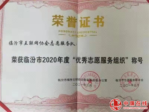 山西:临汾市互联网协会荣获市“优秀志愿服务组织”称号