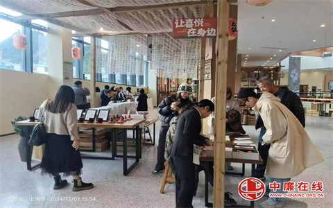 在望仙谷壹号农场旅游服务中心(华坛山油茶工坊)二楼的欢喜市集,竹制品、笋干、茶油、葛粉、蜂蜜等各类地方土特产、特色文创琳琅满目,人们 ...