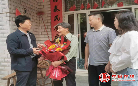 为庆祝中华人民共和国成立75周年,10月9日,江西省上饶市鄱阳县人大常委会副主任、总工会党组书记、主席吴文艺走访慰问全国劳模刘斌、程平 ...