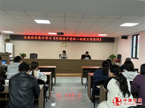 蒙城县庄周街道大美社区集中学习《中国共产党统一战线工作条例》