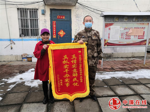 近日,一名办事群众专程远道而来,将一面印有真情实意解民忧,真抓实干办实事的锦旗送到内蒙古乌兰察布市丰镇市元山子乡武装部长李晓东手中 ...