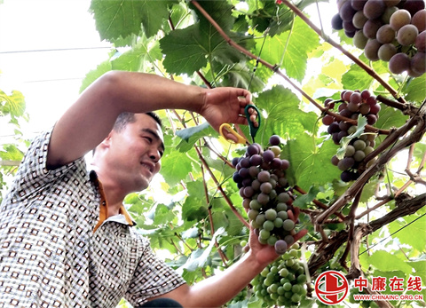 瞧,葡萄园里一排排葡萄藤上挂满了果实,一串串颗粒饱满的葡萄让人垂涎欲滴,这就是辽峰葡萄着色好、裂果轻、甜度高,品质优,颗粒饱满、甘 ...