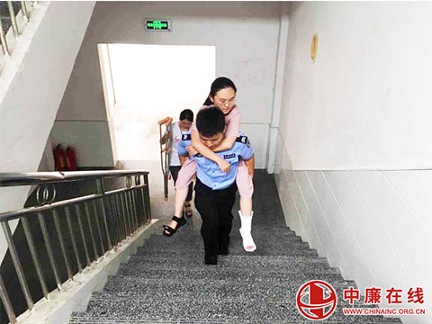中廉在线7月9日讯:昨天上午(8日),在贵州省印江县印江一中考点,一名脚受伤的考生得到了考点老师的特殊待遇,由一中张金勇副校长亲自背考 ...