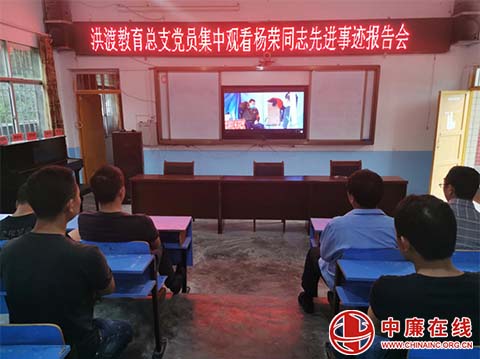 洪渡教育党总支党员干部集中观看杨荣同志先进事迹报告会