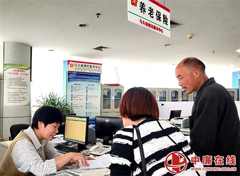 中廉在线6月23日讯:6月22日,在山东省郯城县马头镇便民综合服务大厅,劳动保障服务窗口的工作人员正在热情地给群众办理养老保险手续,确保 ...
