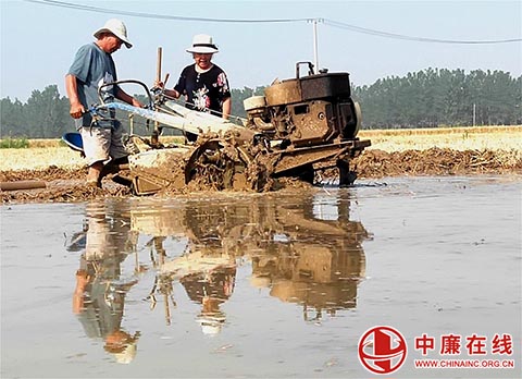 中廉在线6月8日讯:6月6日,山东省郯城县马头镇双兴社区三兴村一对老夫妻正在收割后麦田里灌水和稻田,争分夺秒抢时间地为水稻插秧做好准备 ...