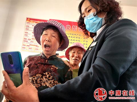 中廉在线4月16日讯:4月14日,在山东省郯城县马头镇花园社区益民村委会办公室,村妇联主樊玉美正用智能手机为村里老人进行智能化养老金认证 ...