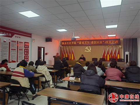 蒙城县庄周街道秋水社区开展“蒙城老乡 请您回家”政策宣讲活动