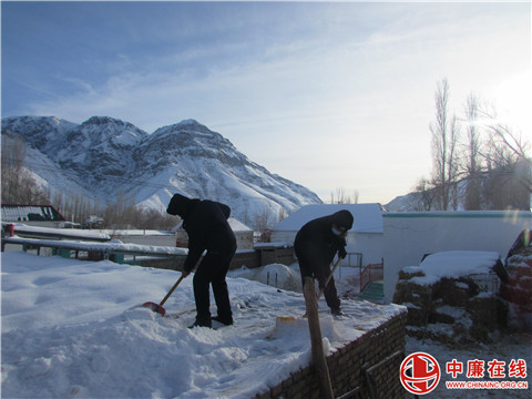 沙合古丽·担巴看着塔吾尔江·阿不力孜和塞达克白尔·乃比感动的说:“真是太感谢你们了,我正发愁怎么将房屋的积雪清理干净呢,你们就来了”,塔吾尔江·阿不力孜说:“我们是党员,又是人民警察,为人民服务,排忧解难本就是我们的职责”。(杨光辉 新疆伊宁县公安局麻扎派出所)