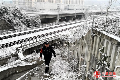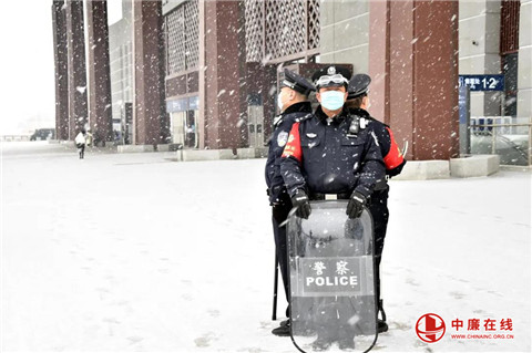 风雪中,毫不退缩。严寒里,淬炼忠诚。全国铁路公安机关和广大民警以雪为令,描绘着不一样的风景。1月25日,在大同南站,大同铁路公安处大同南站派出所民警郭豫会同驻站特警在风雪中巡查站区外重点部位,雪花弥漫,脚步铿锵。2月5日,北京铁路公安处八达岭长城站派出所民警刘士佳在地下100多米的车站巡查,寒气透过厚厚的衣服往骨头里钻。