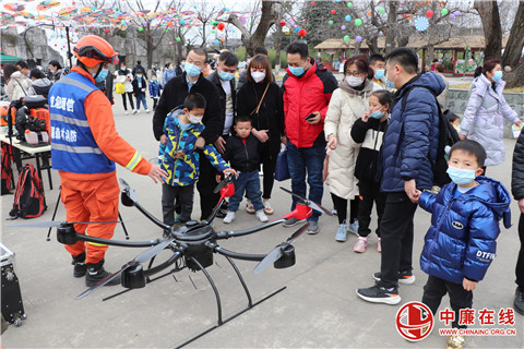 指战员们通过发放宣传单、悬挂宣传标语、播放防火宣传片、展示灭火装备、演示无人机巡查等方式宣传森林防火知识。