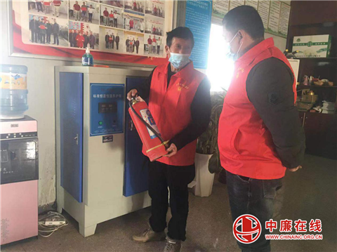 志愿者查看农兴种植专业合作社灭火器使用情况