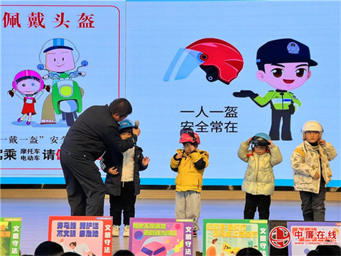 活动中,周警官通过播放交通安全图片、短视频、宣传片等幼儿感兴趣且易理解的方式,直观讲解了骑电动车为什么要佩戴头盔,不戴头盔可能引发的后果等等。紧接着,周警官便引导孩子们试戴头盔,讲解佩戴头盔必须系好下颌带,下颌带应紧贴下颌,松紧以下颌有约束感,但不难受为宜的正确佩戴方法,从而更好地帮助了孩子们知道正确佩戴头盔的重要性。同时结合道路交通法律法规向幼儿和教师讲述了违反道路交通规则的危害性,让大家懂得在电动自行车出行中做到不闯红灯不逆向行驶、不停车越线、戴好头盔等五项交通安全规范。大家耐心倾听,积极互动。最后,周警官向孩子们分发交通安全宣传手册,鼓励孩子们争做头盔小达人,向家长们宣传有关骑乘电动车戴安全头盔的交通知识。在“小手牵大手”的激励方式下,共同营造文明和谐的道路交通环境。