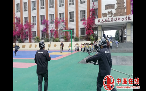 为切实提升校园安全防范水平,进一步加强师生对突发暴恐事件的防范意识,提高对恐怖事件的有效处置、自护自救及逃生避险的能力,提升处置校园突发事件的综合能力, 5月11日,四川省内江市威远县连界镇中心学校开展了校园反恐防暴应急演练。