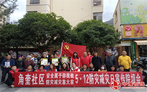 为全面提高辖区广大党员群众的风险防范意识、知识水平和避灾自救能力,5月11日,云南省昭通市彝良县角奎街道角奎社区党总支联合共青团彝良县委开展“5·12”防震减灾系列宣传教育主题党日活动。