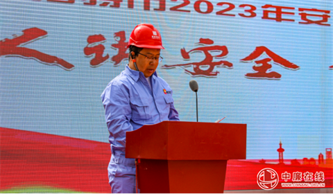 启动仪式上内蒙古能源发电兴安热电有限公司职工代表佟海波宣读安全倡议书。倡议全市生产经营单位强化安全意识、压实安全责任。不断学习安全知识,努力提高安全技能,把风险管控和隐患治理双重预防工作机制做细做实,以安全生产的实际行动为企业高质量发展贡献力量。