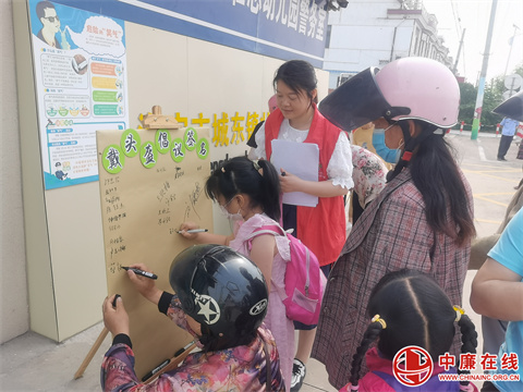 全体家长积极响应学校号召,纷纷来到戴头盔倡议签名板前,郑重写下自己的名字,争做文明交通践行者。