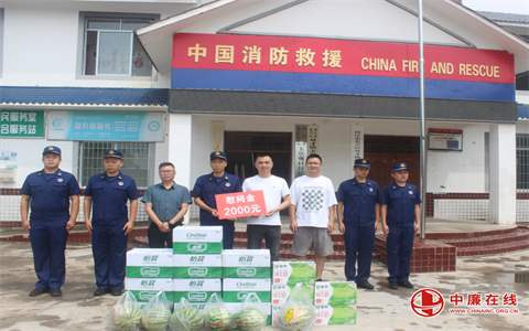 在慰问现场,醒目的“中国消防救援”特别引人注意,救援人员身穿蓝色的消防救援服,整齐的队列,英姿飒爽、特别精神。邓召蓝表示,该消防救助站在双桥-双才片区的消防救援工作中,做出了积极的工作,确保辖区无重大消防安全事故发生。随后并为驻守在该站的工作人员赠送了西瓜、矿泉水、牛奶等慰问品和2000元的慰问金。