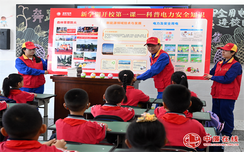 当日,四川省内江市东兴区牛牦山小学邀请国家电网四川省内江市东兴供电公司的青年志愿者走进校园,开展“开学第一课 安全用电进校园”活动。青年志愿者们通过宣讲安全用电、节约用电、科学用电和触电急救知识,引导学生们养成安全用电、节约用电的好习惯。(兰自涛 摄)