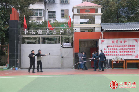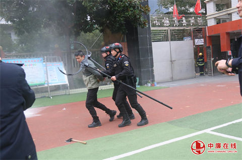 为了有效防范突发伤害事件,预防校园暴力事件的发生,切实保障师生人身安全,增强学校值班人员和门卫的反恐防暴意识,2023年12月18日下午,贵州省铜仁市沿河土家族自治县实验小学安全办联合沿河县公安局反恐大队、特巡警大队组织开展了一场校园反恐防暴应急演练。