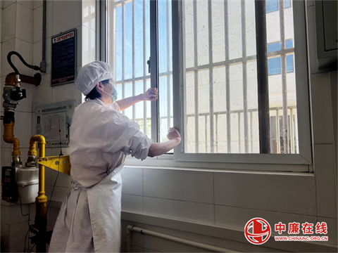 随着报警器启动,食堂人员立即启动燃气泄漏应急处置预案,使用灭火毯迅速扑灭锅内火苗,一员工关闭灶台阀门和燃气总阀门,其他工作人员立即切断总电源,并打开门窗通风,然后快速沿着生命通道有序向外疏散。