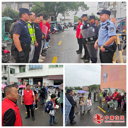当天放学时刻,学生及其家长在校门口看到了一道靓丽的风景线:港口镇综治中心联合镇妇联、司法所、派出所、弋阳义警等工作人员在校门口值守的身影,他们在人流中守护着放学学生们的安全。